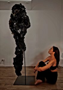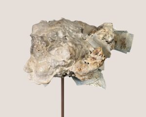 “Selfie_22” esplora il tema dell’identità e dell’auto-celebrazione, attraverso materiali plastici, l’uso del bianco come colore simbolico e il fuoco come elemento ricorrente. L’opera riflette la ricerca di Morzetti sul rapporto tra individuo e immagine di sé, creando una sintesi tra scultura e concetto.